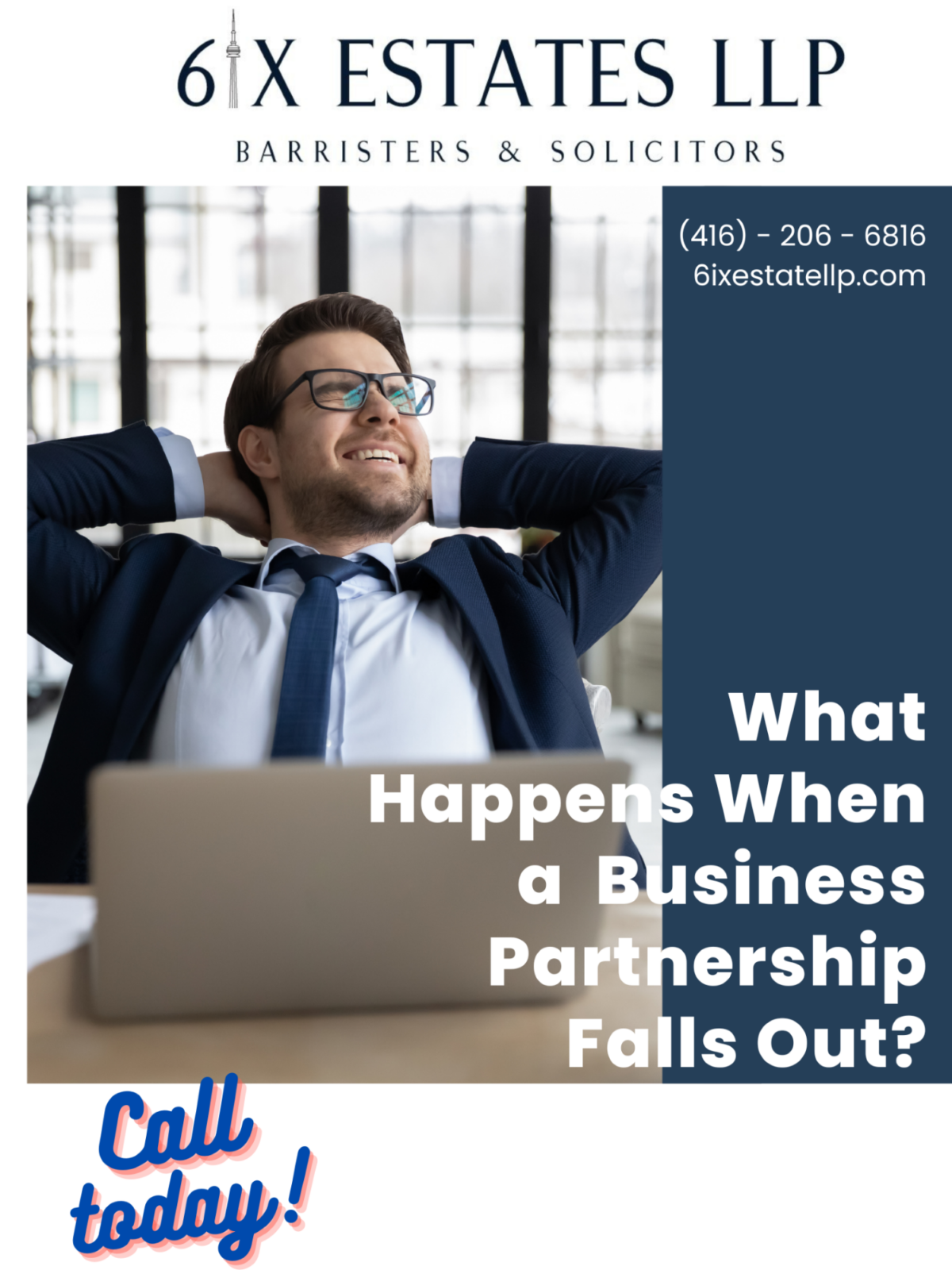 Although a business starts with good intentions, you can never predict the future. Some people do have bad intentions, no matter what relationship the partners have outside of business. If the intention is for the business to be successful, and if both partners are moving with honesty and by the books, there should be no problem to engage with a corporate lawyer. This is to ensure that both partners have something in place to determine what the split will look like when the business flourishes, if one partner chooses to leave for whatever reason. Since there is a lot of paperwork involved in dismantling a business and splitting assets, the lawyers here at 6ix Estates LLP work hard to make sure nothing is overlooked. Hence, we know how to best protect our clients’ interests. Get in touch with our firm at 416-206-6816 anytime Monday to Friday between